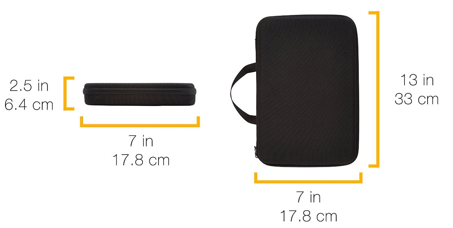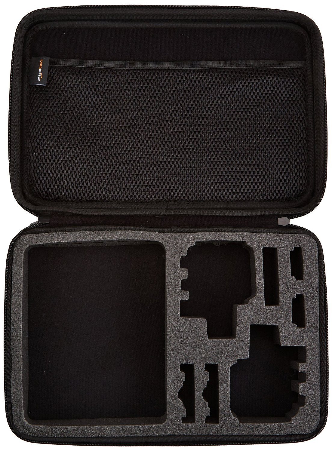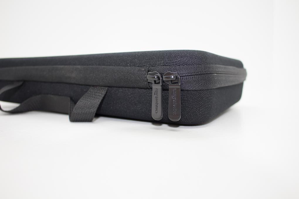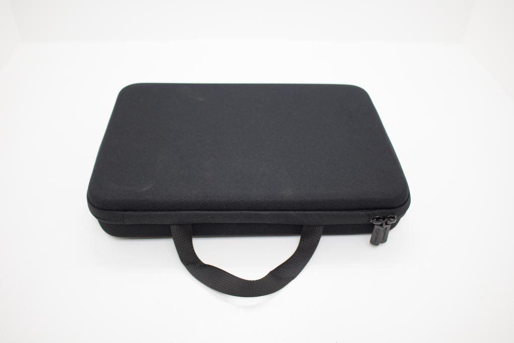 Let’s get some of the basics out of the way (you see what I did there? Amazon… basics…). AmazonBasics offers their GoPro carrying case in two sizes, large and small. The large case, which I have in front of me, seems to be the more practical of the two. The case itself is designed to be able to cart around 2 GoPro cameras and some accessories. The case measures 13 inches x 9 inches x 2.5 inches making it small enough to be convenient. The case weighs in at just under half a pound and is offered in the universal color of black.