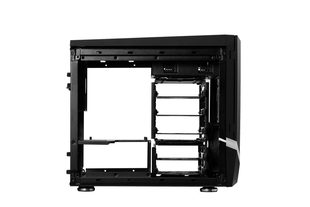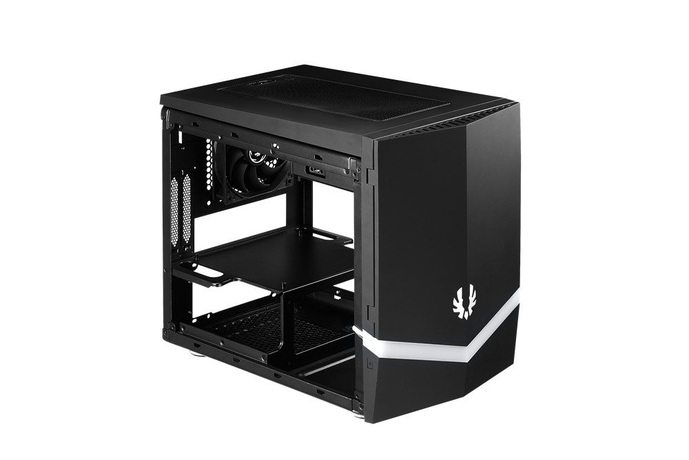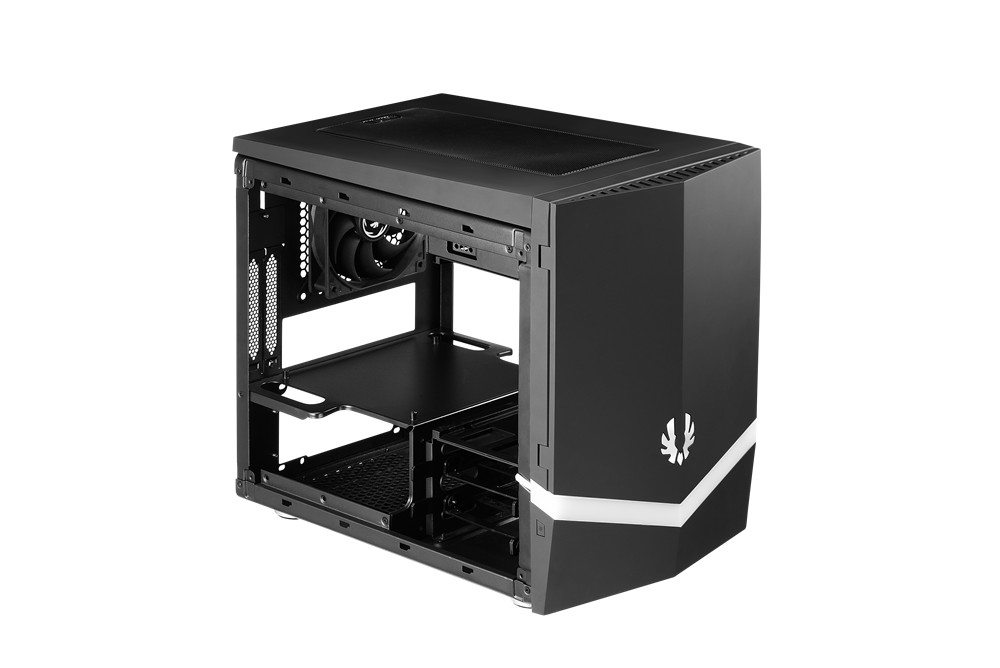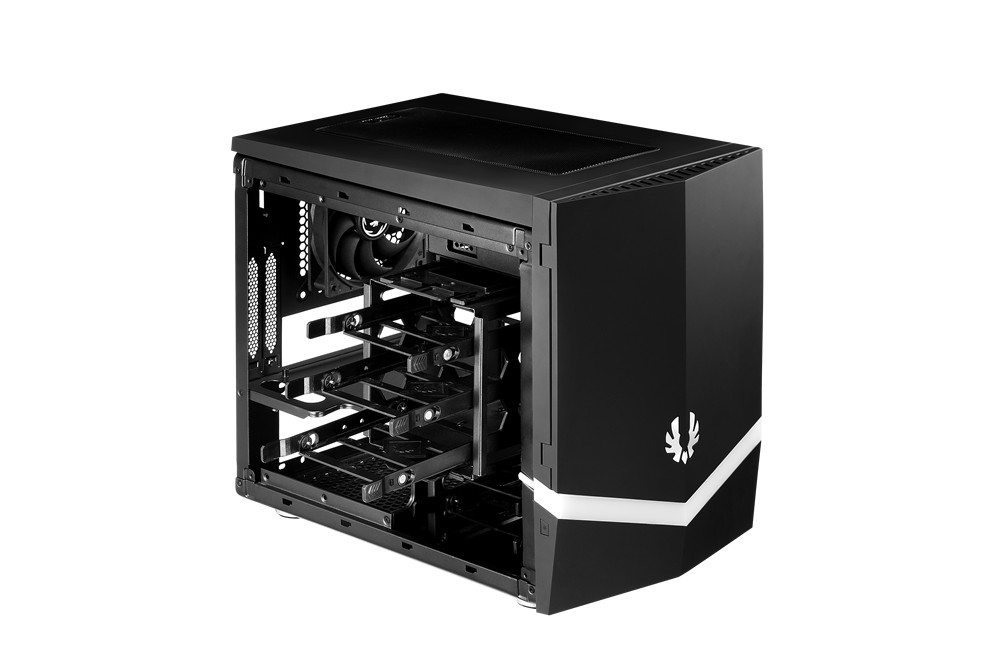 Once the side panels are removed, the modular chassis reveals its genius. BitFenix seems to have solved the mini-ITX riddle. That is… how to offer plenty of storage, cooling, and style, while being able to accommodate all the popular hardware (big video cards for small gaming rigs).