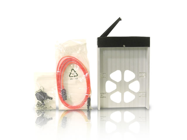 The BPU-340SAS is a 4 tray backplane that occupies three 5.25″ bays and does so with an all aluminum design and some stylish looks. This backplane weighs in at a sturdy 10lbs., features an 80mm cooling fan, power toggles for each tray, a safety lock, and supports RAID 0/1/5 configurations. The unit also ships with 4 SATA cables sporting connector latching and generous lengths.