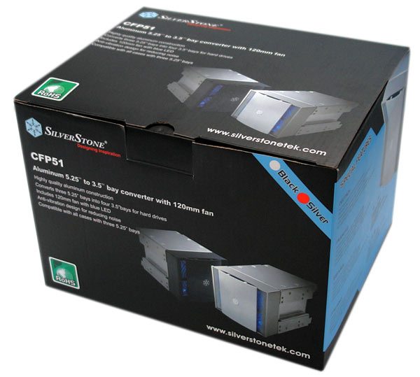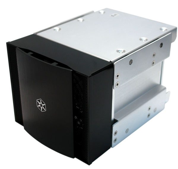 Even though the TJ04-E has room for 8 internal 3.5″ drives already, we need more! Having 4 x 5.25″ external drive bays at our disposal seems like the perfect opportunity to employ a 4 x 3 drive bay converter. The CFP51 fits the bill perfectly. SilverStone’s CFP51 takes 3 5.25″ drive bays and converts them to 4 3.5″ drive bays; all while looking spectacular. To keep things cool and quiet, the HDD rack is fitted behind a 120mm fan and the rack is installed using rubber grommets to reduce noise due to vibration.