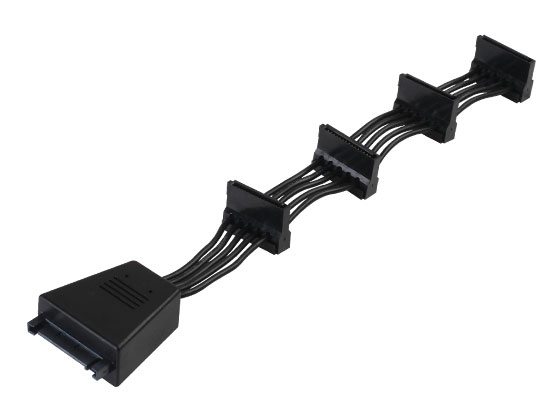Nothing drives me crazier than a rat’s nest of wires inside my builds. To alleviate some of the clutter and address the large number of drives in this build we will be using the SATA power connectors that shipped with the TJ-04E. These power connectors are simply fantastic; they turn one SATA connector into four and do so without a mess.