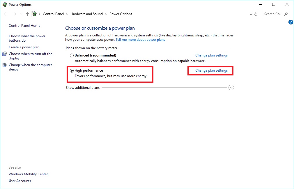 - Click the Radio button for High Performance