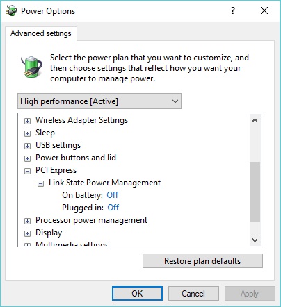 - Validate that Link State Power Management is Off