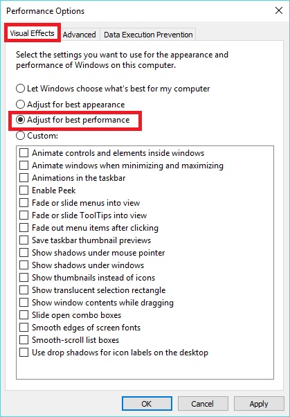 - Choose the Radio button for Adjust for best performance