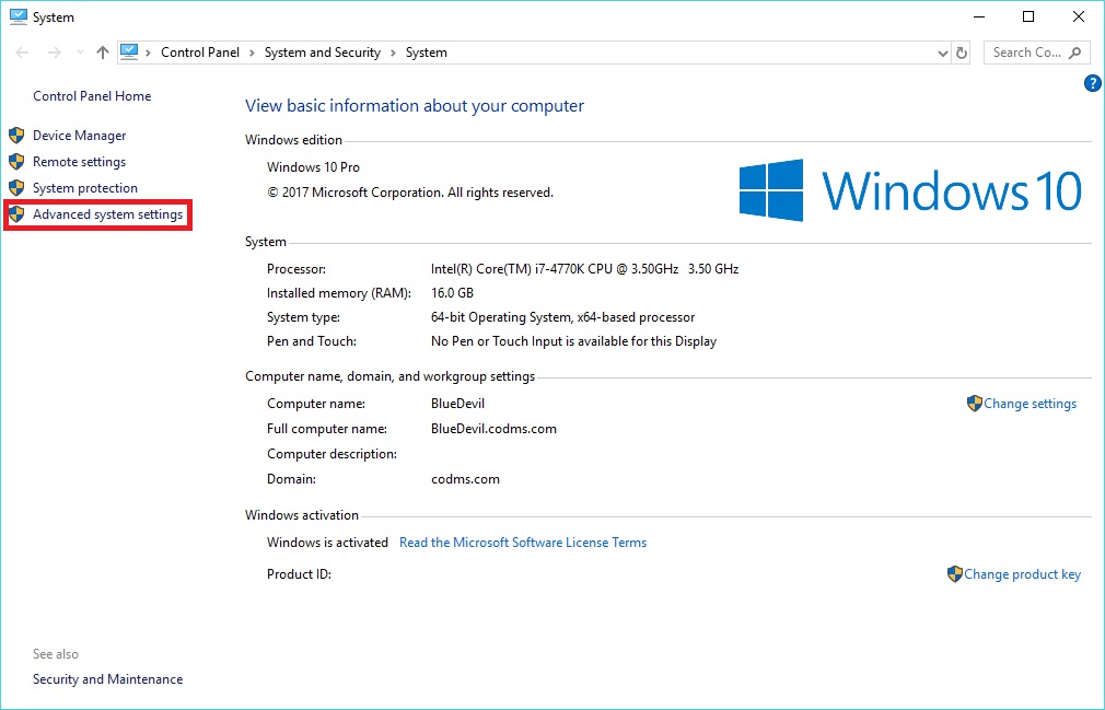 - Click Advanced System Settings