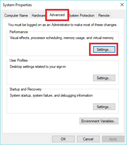 - Advanced Tab under Performance, Click Settings
