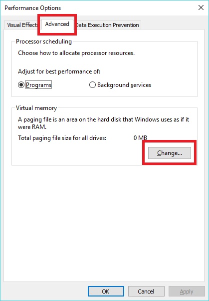 - Click Change to configure Virtual Memory