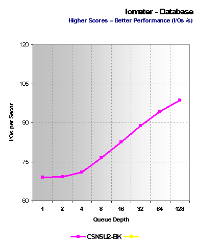 The next test, Iometer, was added to benchmark the multi user environment and simply stated; it is both a workload generator and a measurement tool. Iometer measures performance under a controlled load measuring I/Os at varying depths. Iometer will be used with two of the better known scenarios, the File Server and Database patterns. A lot of information can be extrapolated from this such as Total MB/s, Average I/O Response times, and more. The patterns of File Server and Database will be run at a depth of 1 – 128 I/Os in a doubling fashion (1, 2, 4, 8, 16, 32, 64, and 128).