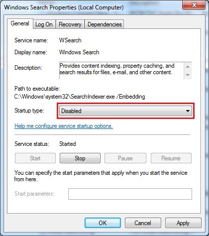 Remember though, this comes at a risk. If you disable search indexing you will lose the ability to search from start menu and you will also lose the ability to search Media Center if you are using the rig as an HTPC.