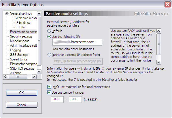 7. Just FYI, if you need to access the FTP server from within the same network, use the internal IP of your WHS as the hostname i.e. 192.168.1.21 . I ran into 'no data connection' errors when trying to use the outside 'homeserver.com address from wihtin my LAN.