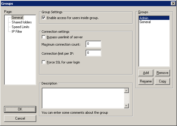 After applying the simple settings for getting your FTP up and running it is time to create a group to add your FTP users too.  I usually create a group for family and a group for friends.  The family group is allowed to write, create, delete, etc. and the friends group is simply allowed to read. To accomplish this, click on the Edit option in the main FileZilla Console and choose the option for groups.