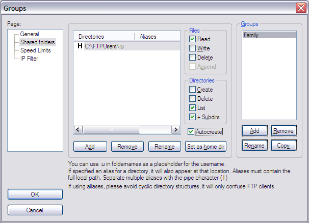 Same as Mike and Bjorn… A little precision would be nice (something I liked about your hMailServer piece), as in WHO’s ‘Home’ directory?!? MY ActiveDirectory entries in the registry (and I assume everyone else’s) are based on a logged on user. What user?!? The one attempting logon? Because that sure as heck doesn’t have anything to do with the group (which is where the directories are set in your instructions, unless you are saying everyone in the group has to have the same ‘Home’ directory set for them in the registry). Is it based on the user account FileZilla server is running in? What EXACTLY are we supposed to use for the home directory, that is, what specific steps do you have to take to get the ‘Home’ directory that will work for FileZilla Server on my machine (from among two dozen user accounts on this machine, most with ‘Home’ directories that are a concatenation of their user name and one of the public shares)…