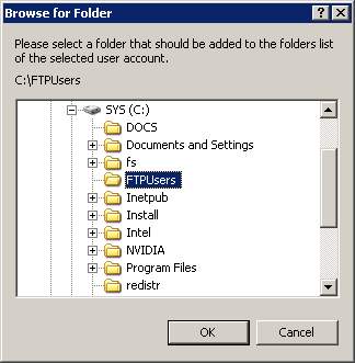 - Navigate to your FTPUsers directory and press OK