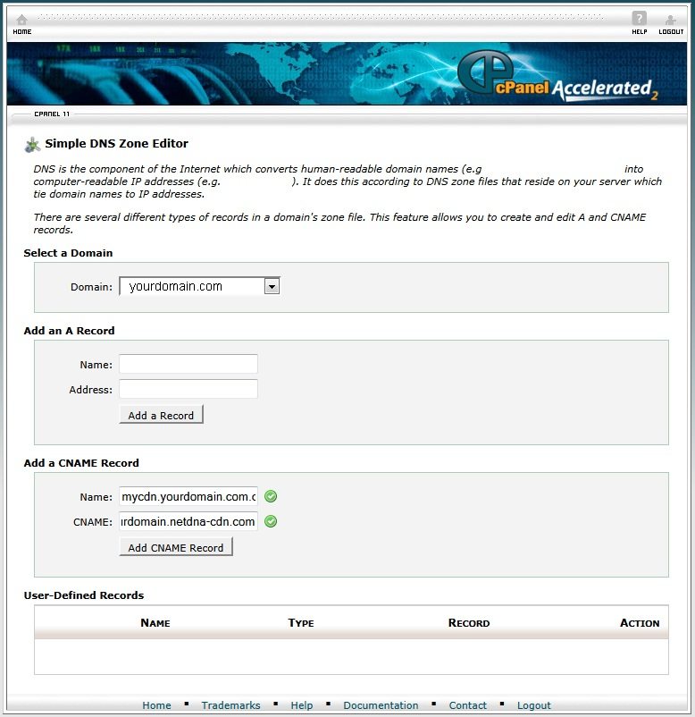 Now, you should create a CNAME record for you new CDN.  If you don’t know how to do this, ask your website administrator or the hosting company you use.  This may be the only aspect of this tutorial that you do not have control over.  If you use a Control Panel, you can most likely log into it and create the CNAME record very easily.