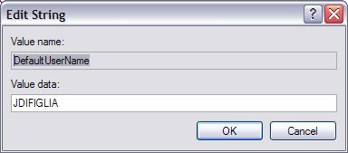 3. Using your account name and password, double-click the DefaultUserName entry, type your user name, and then click OK.