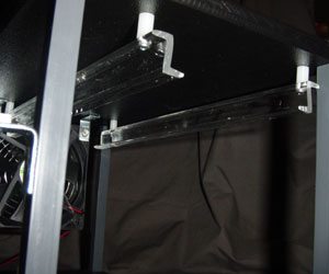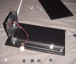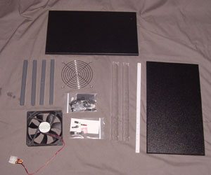 As I pull the pieces out that will construct this geek’s dream, goose bumps raise my hairs; is this what I have been looking for the whole time? Packaged inside this box are the two high quality bench surfaces, the four vertical supports, a 120mm fan, a bunch of assembling supplies, and an ATX Control Kit. To put this thing together you need only a Phillips head screw driver, the parts, the instructions (optional), and some patience.