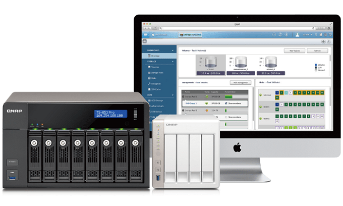 TS-x51/x53 users can now aggregate multiple RAID groups into a large storage pool and flexibly utilize the storage capacity, allowing for better data protection against multiple, concurrent disks failures in large capacity environments. Multiple volumes can now be created on the Storage Pool to provide flexible deployment. For example, one volume is created for storing surveillance recordings and another for storing company data. If you want to create volumes on the Storage Pool for more flexible deployment, please read the tutorial and online user manual.