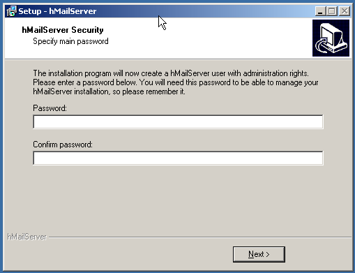 While installing with all the default options, you will eventually be prompted to set up an administrator password.  Make this a strong password as this will allow access to your email server setup.  At the conclusion of the installation you can have the installer automatically launch hMailServer administrator.