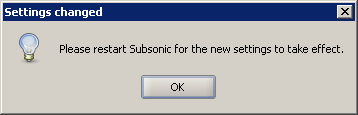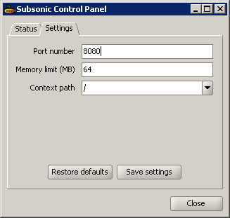 Change the default port for Subsonic as the default port 80 is used by your home server web page. I chose to change mine to 8080 as most companies have this port open on their network. After you click Save, you will be prompted to restart the Subsonic Service and can accomplish this by clicking the status tab and simply clicking stop and then start.