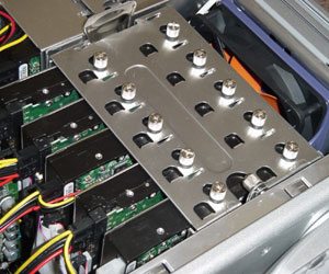 The thumbs screws are nice touch and make things a heck of a lot easier, but as I was screwing my drives in place I got stabbed by something. I thought that I was nuts at first, then I started looking around and found this: