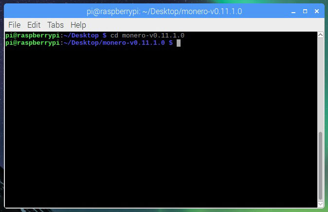 Once Raspian is installed and ready to go, copy the Monero-linux-armv7-v0.11.1.0 (depending on when you read this, there may be a new version) to the desktop. You can right-click to extract. The extraction will take longer than you are used to, these devices are for learning, not quantum computing. After the extraction is complete, you should end up with a folder by the same name with 5 files in it.