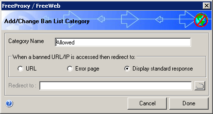 White Listing is far easier to manage than ban listing or black listing. To start, from your FreeProxy Control Center, click the icon for Ban List. This may seem a bit confusing at first, but once you play with it for a bit, it starts to make sense.