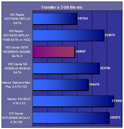 The Raptor simply blows away everything tested. This testing confirms that the HD Tach registered times were no fluke, and that this drive just barely beats out some of the older drives.