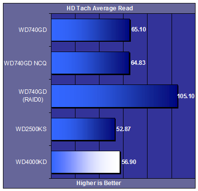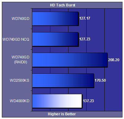 It is nice to see that the 400gig drive here reads a little faster than the 250gig drive sporting the 300MB/s interface. The Raptor’s in RAID… WOW!!