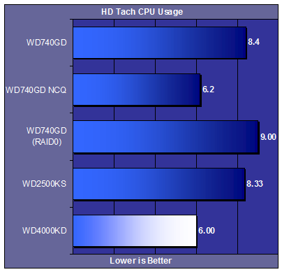 CPU usage is the lowest of all the drives tested. Using only 6% CPU during testing, that’s a nice number to have, especially while I am stomping out the competition on Need For Speed: Most Wanted.