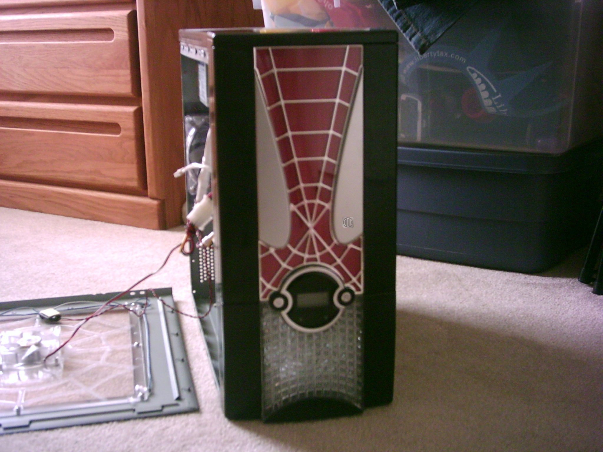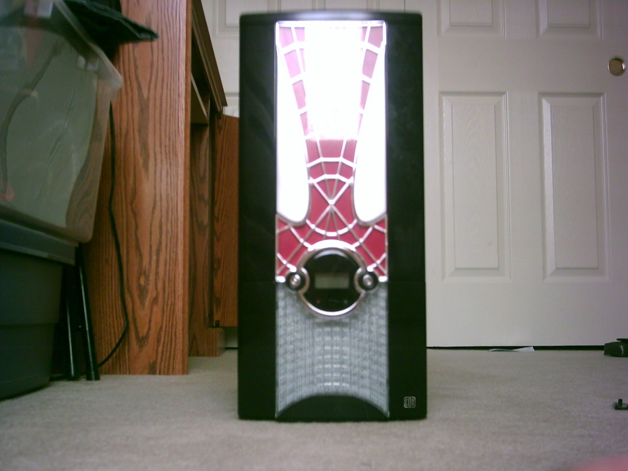 I was disappointed that the front of the case only had illumination on the display. I was anticipating the white eyes or the red mask to also contain lights. However, this does not detract from the sheer coolness factor. I was anticipating an attractive case and I was not disappointed. Is it on the level of a Lian Li? No, nor is it supposed to be. You won’t get all the bells and whistles, but you also won’t be paying upwards of $100 either. In fact, you can pick up one of these at Xoxide right now for a mere $59.99. If you fancy a slightly different color scheme, this same case is available in silver and blue. Additionally, you can get them with red eyes and a white mask for $19.99. Xoxide doesn’t set out to break any barriers in the options area, but they succeed in providing an inexpensive alternative to the bland beige door stop we have all come to loathe.