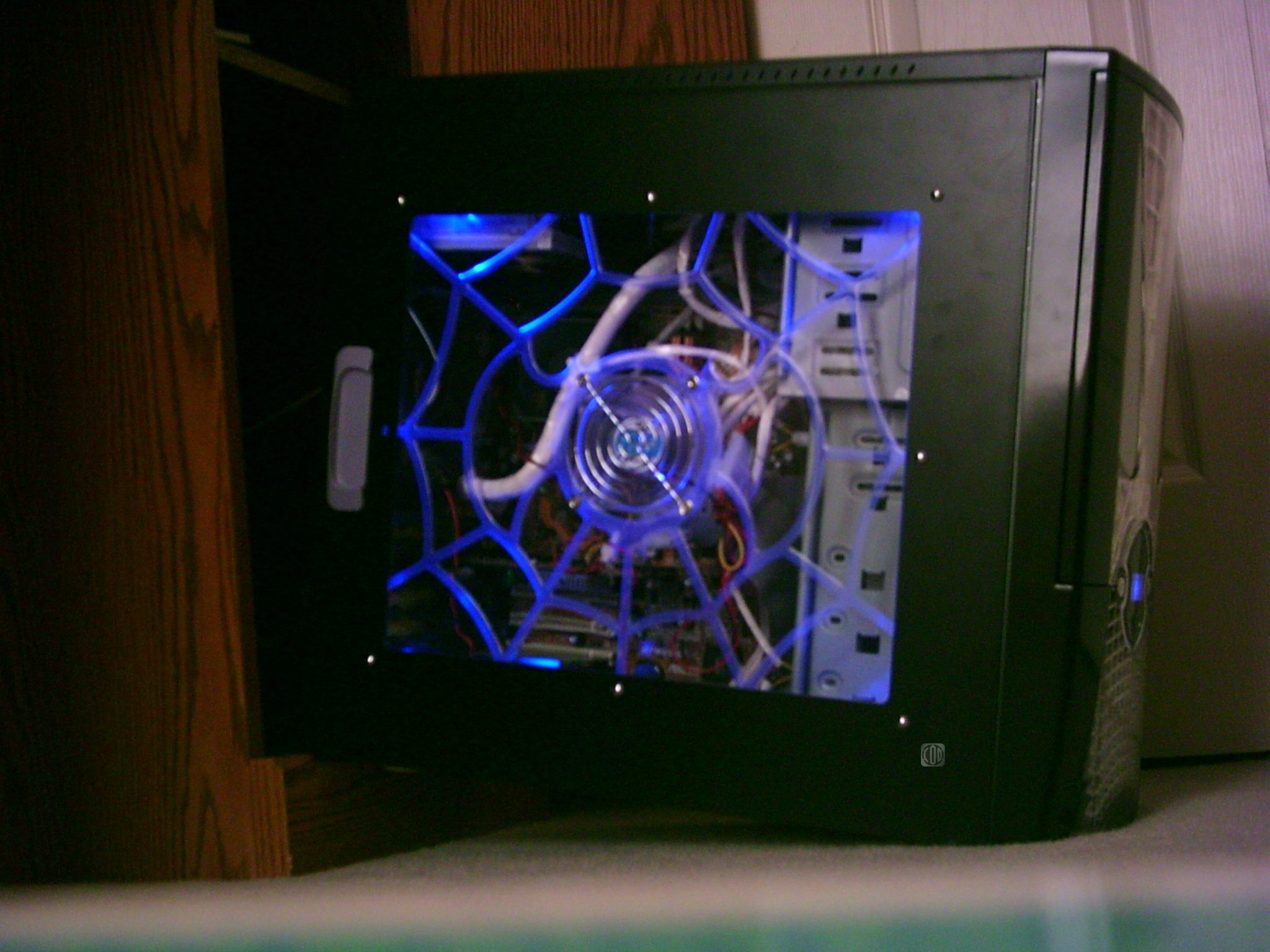 Finally, here is a picture of the side panel with the led’s working. Sweet! And a shot of the side panel and front led in the dark. Sweeter!